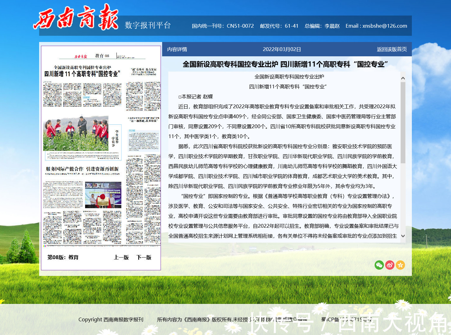 (来源:西南商报 2022年3月2日 第08版:教育 全国新设高职专科国控专业出炉 四川新增11个高职专科“国控专业”)